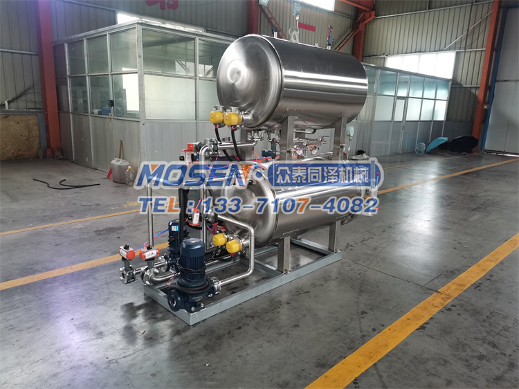 牛肉殺菌原理是通過熱水罐內121℃的殺菌水注入鍋內(中和后溫度在100-110℃),完全浸泡全部食品,