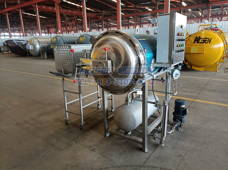 鍋體:包括鍋身、鍋蓋、彎臂、軌道、密封圈、滾輪、安全聯鎖裝置、蒸汽管、噴淋管、冷卻水管等。